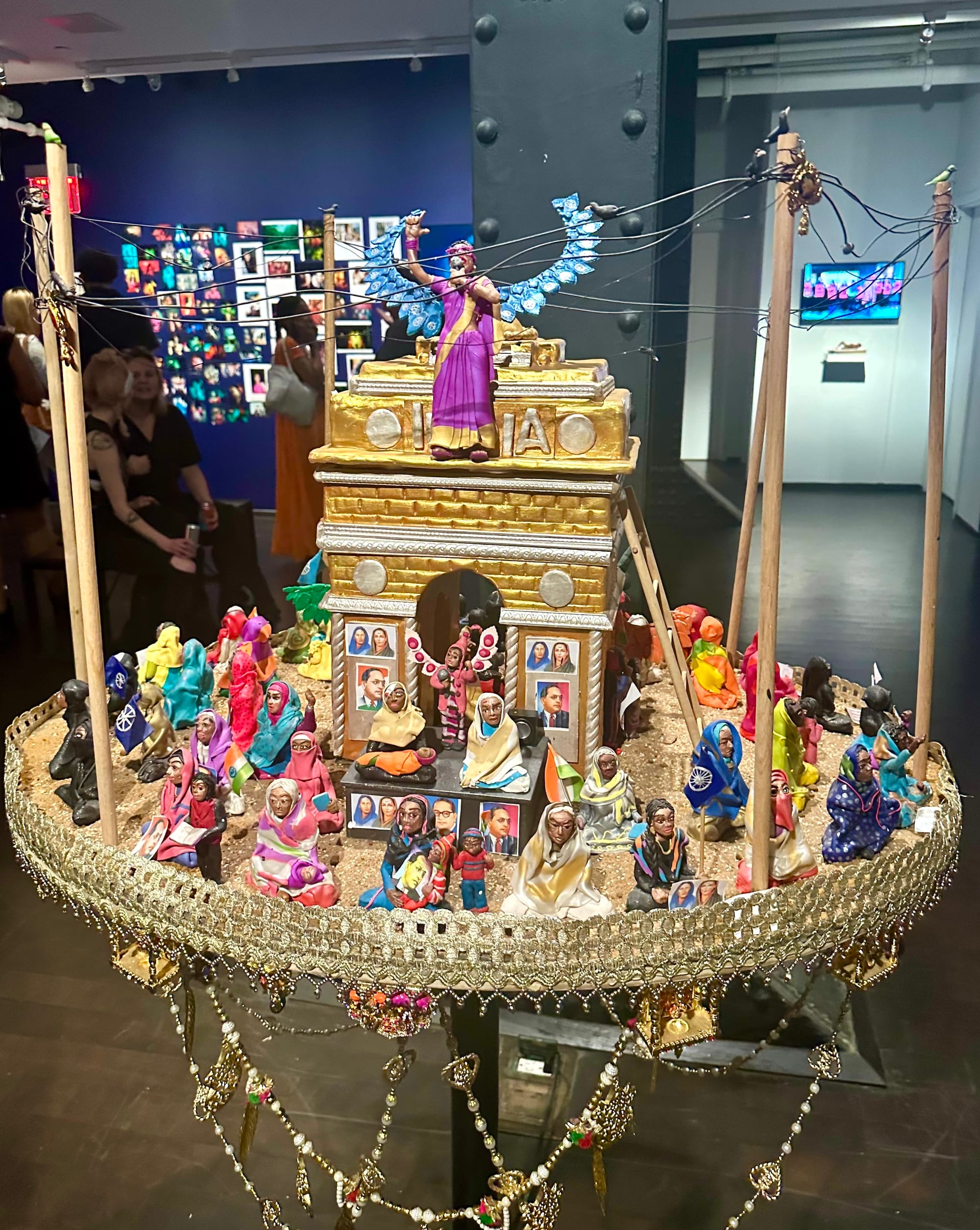 Pyaari Azaadi, "Azaadi" (2025), featuring polymer clay models of trans activist Grace Banu atop India Gate and of the women who participated in a 101-day-long sit-in at Shaheen Bagh in protest of the Citizenship Amendment Act from 2019 to 2020 (photo Lakshmi Rivera Amin/Hyperallergic)