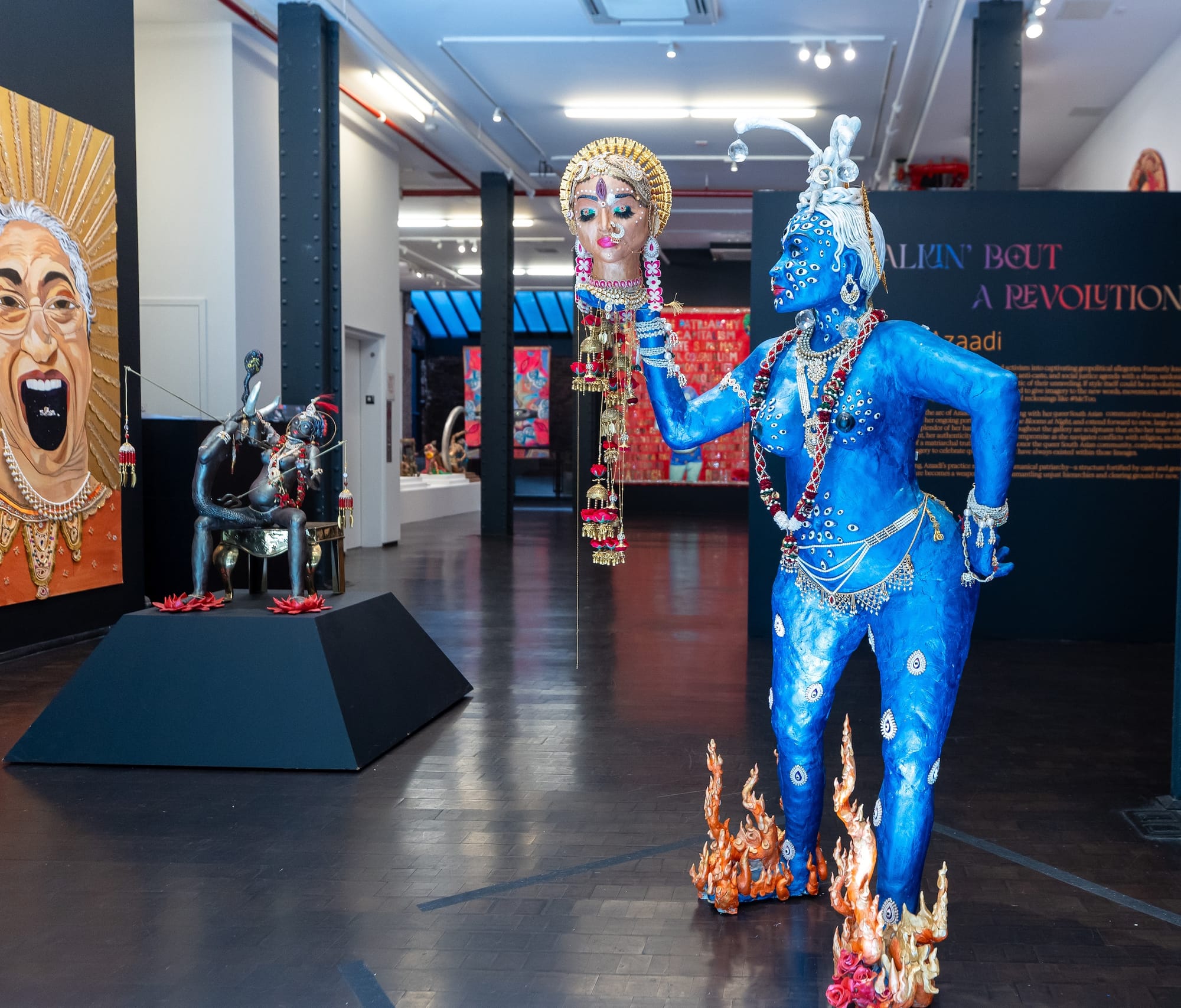 PA: There are these Hindu fundamentalist goons that go around India shouting “Jai Shri Ram, Jai Krishna” as they're killing and pillaging Muslim and Dalit people. And it was just really painful to hear my name every time this kind of violence was being enacted. There's this little sculpture in the show of Shaheen Bagh [protest site in New Delhi, India], and there's a little girl in the sculpture, and you can hear her voice, and she’s saying, “Bacche mange? Azaadi. Boodhey mange? Azadi. Pyaari pyaari azaadi” (“What do kids want? Freedom. What do elders want? Freedom. Sweet, sweet freedom”).
